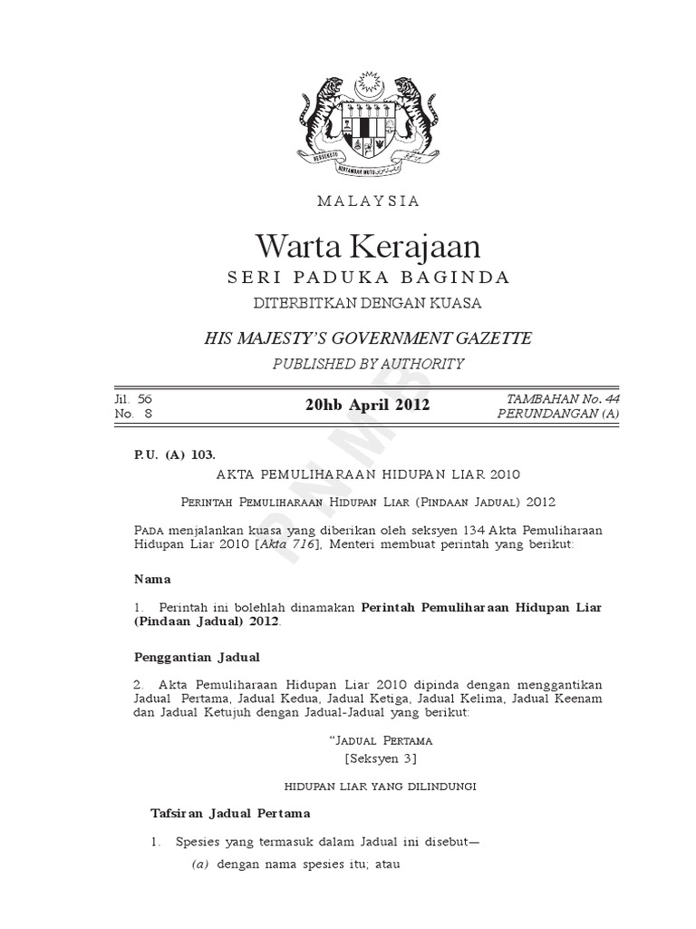 Related : Akta Pemuliharaan Hidupan Liar 2010 / Laws Of Malaysia Akta Pemuliharaan Hidupan Liar 2010 - Kes disiasat mengikut seksyen 60 dan seksyen 68, akta pemuliharaan hidupan liar 2010 akta 716..