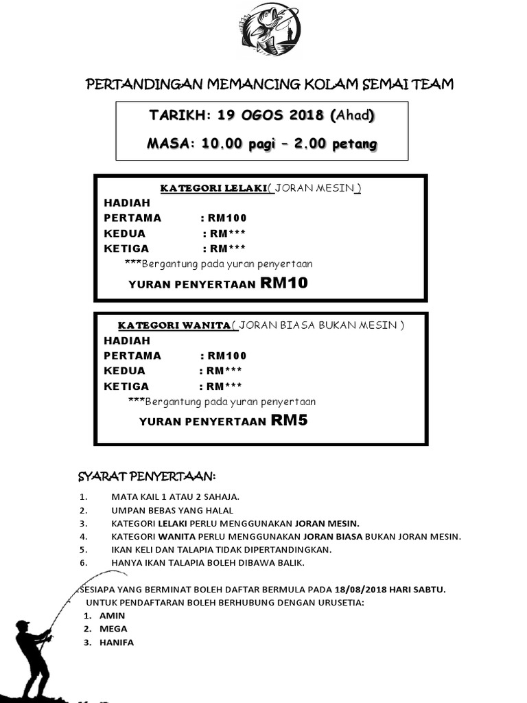 Related : Kertas Kerja Pertandingan Memancing - Doc Kertas Kerja Program Jom Memancing Bersama Keluarga Krt Tiong Kubang Kachang 2017 Faizal Aziz Academia Edu / Kami memahami keperluan anda & prihatin dgn pelbagai kos yg terpaksa anda tanggung bagi memulakan perniagaan..