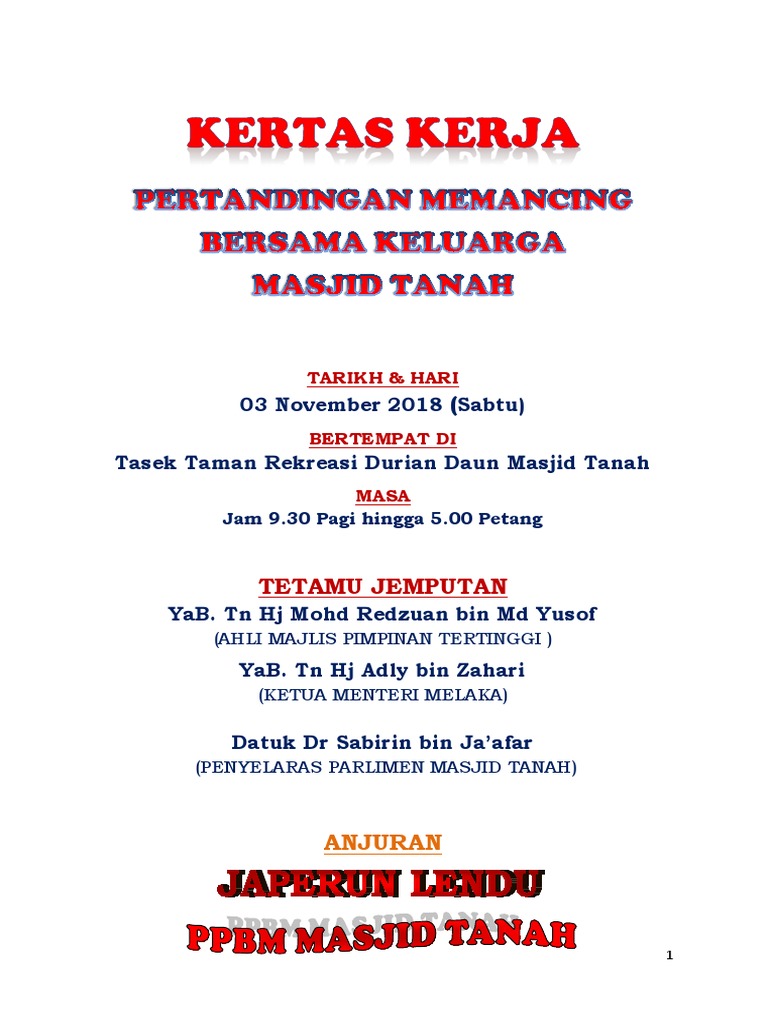 Kertas Kerja Pertandingan Memancing - Doc Kertas Kerja Program Jom Memancing Bersama Keluarga Krt Tiong Kubang Kachang 2017 Faizal Aziz Academia Edu / Kami memahami keperluan anda & prihatin dgn pelbagai kos yg terpaksa anda tanggung bagi memulakan perniagaan.. Rabu hingga ahad anjuran : Yuran penyertaan satu peserta rm 15 diperlukan. Pertandingan kawad kaki inter pbb 2013 smkbs2. Kertas adalah bahan yang relatif murah, banyak perusahaan memanfaatkannya untuk keperluan bisnisnya. Pertandingan ini dikenali sebagai pertandingan tenis anjuran gerko permainan tenis.